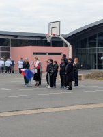 Le jeudi 16 octobre 2025, le collège Montaigne a rendu un hommage solennel aux professeurs Samuel Paty et Dominique Bernard, victimes du terrorisme. À 9h30, l’ensemble des élèves et des personnels se sont réunis dans la cour pour un moment de recueillement et de mémoire.