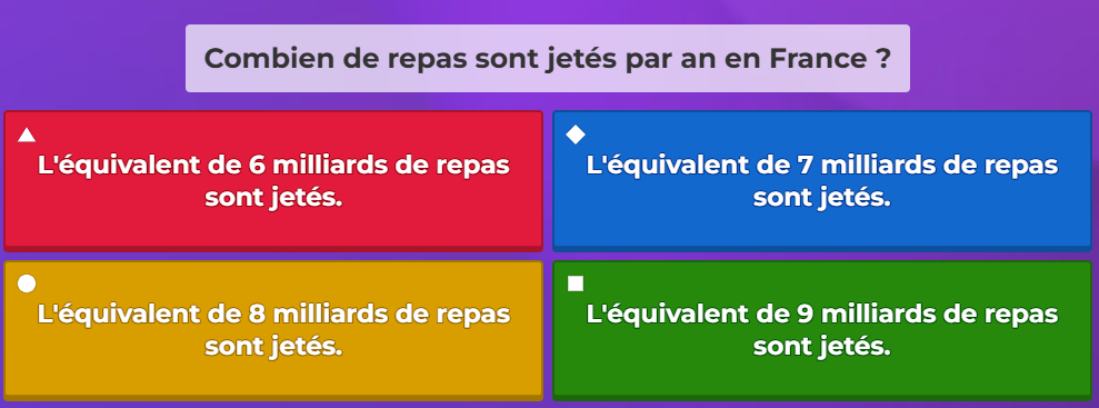 (la bonne réponse est : 8 milliards de repas jetés...)